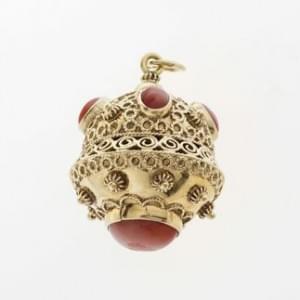 3221. Pendentif serti de corail rouge en cabochon