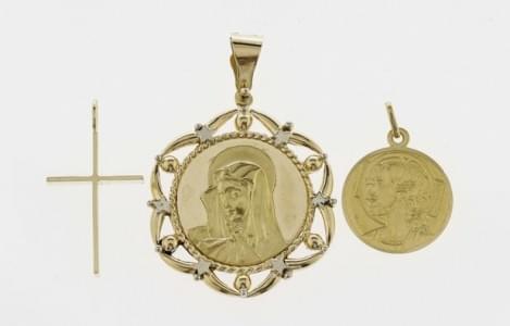 3225. Lot comprenant un pendentif hibou, une médaille du signe du taur...
