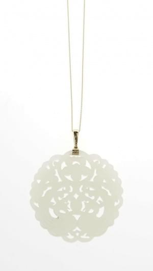 3254. Pendentif en jade à motif d'oiseaux, avec sa chaine