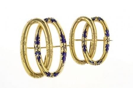 3238. Lot de deux broches "bijou de cheveu", l'une émaillée de noir, l...