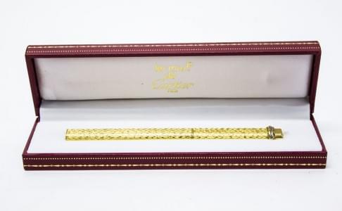 3277. Cartier, stylo guilloché, le capuchon surmonté des trois anneaux...