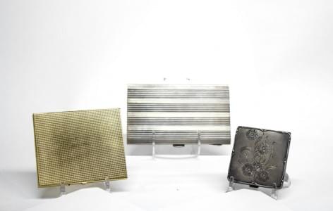 3298. Ensemble de trois boîtes : deux boîtes à cigarettes et un poudri...