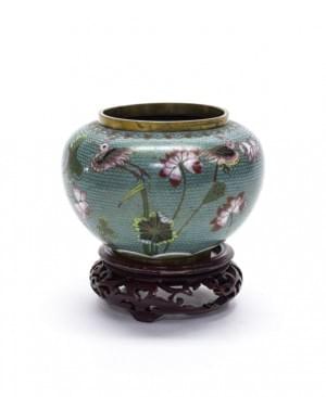 Cuivre et émaux cloisonnés sur fond turquoise, D 9,5 cm