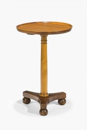 Bois fruitier, piétement tripode, H 71 cm, D 46 cm