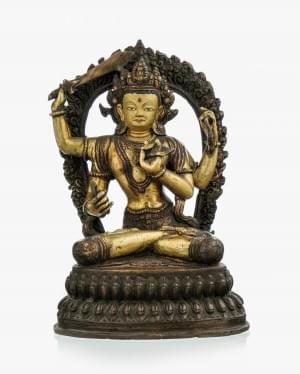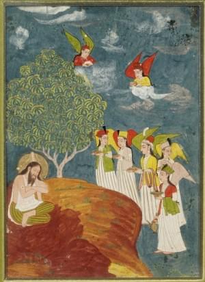 Divinité et figures ailées, miniature, gouache sur papier, 21x15...