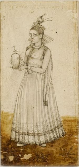 422. Jeune femme à la robe plissée et à la fraise, Inde Moghole, XVII...
