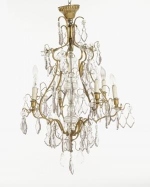 Pendeloques en cristal et cristal de roche, H 52 cm. Collection...