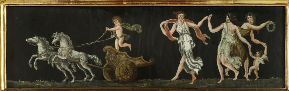 Bois stuqué et doré à décor de deux frises peintes figurant le c...