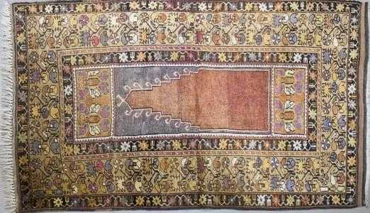 A décor d'un mirhab stylisé, bordure sur fond jaune, 196x103 cm