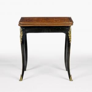 Marqueterie de bois de rose et violette, bois noirci, bronze dor...