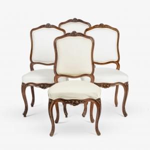 Hêtre mouluré et sculpté, garniture de tissu blanc. Collection B...