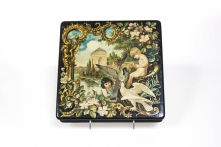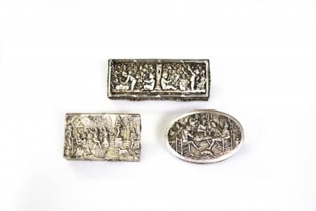 3294. 3 boîtes à décor repoussé de putti et scènes de genre, Pays-Bas...