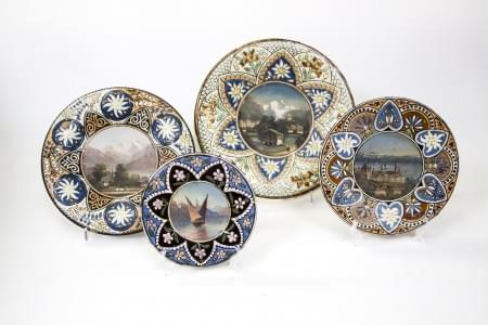 À décor de vues de Suisse, céramique émaillée, D 12 à 22 cm