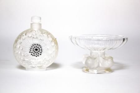 3218. Lalique France, Flacon à parfum Dahlia et Coupe Nogent