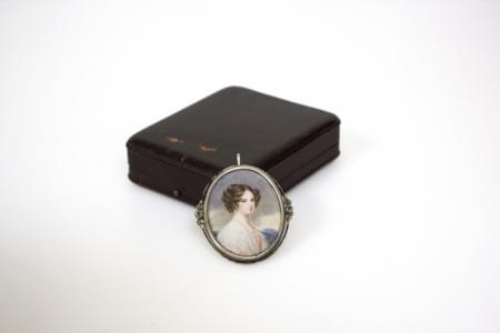 Gouache sur ivoire, montée en broche en argent, 5x4 cm