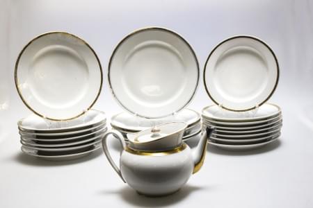 Porcelaine bone china, comprenant: 12 assiettes à dessert, 10 ta...