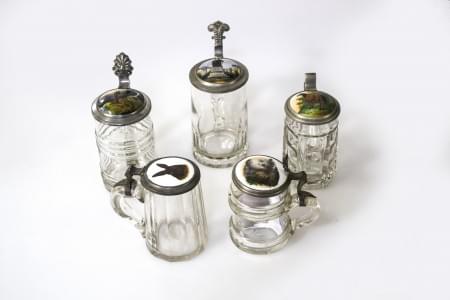Cristal, étain et porcelaine émaillée, H de 14 à 19 cm
