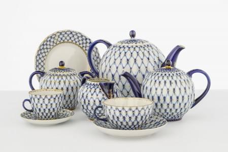 A décor de treillis bleu cobalt d'après le modèle de la manufact...