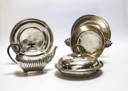 Argent et métal argenté, corne et ivoire, 300g. Collection B. de...