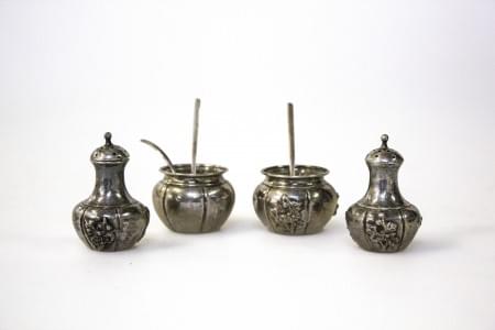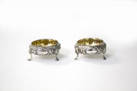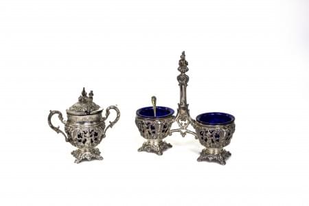 3264. Saleron double et moutardier à motif ajouré de putti et rinceaux