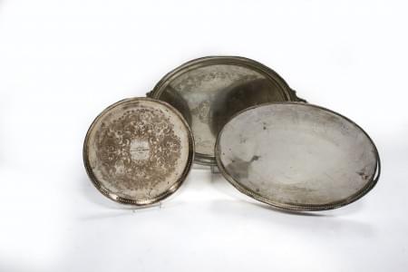 3265. Trois plateaux de service à décor de rinceaux et galerie ajourée...