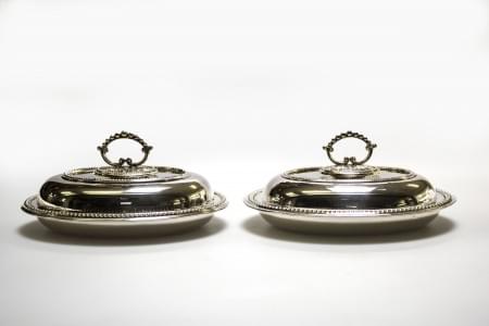 3267. Paire de légumiers ovales à bordures de perlettes et anses détac...