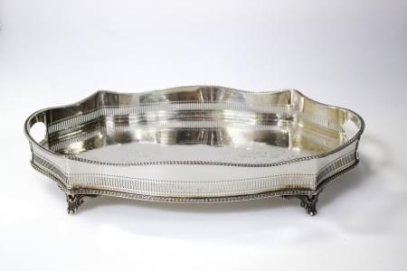 3272. Plateau de service gravé de rinceaux et à bordure ajourée de can...