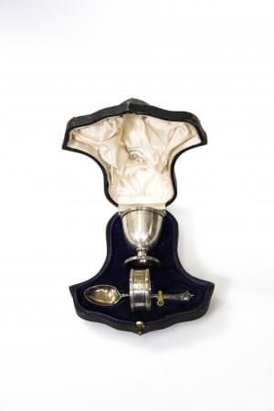3273. Set de baptême comprenant un coquetier, un lien de serviette et...