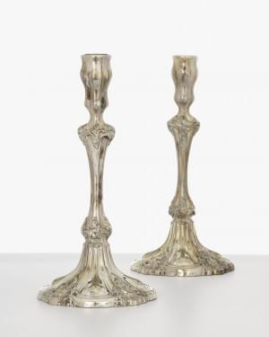 3282. Paire de chandeliers festonnés à motif d'acanthes
