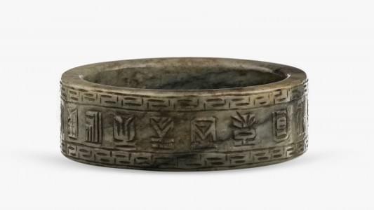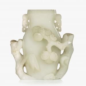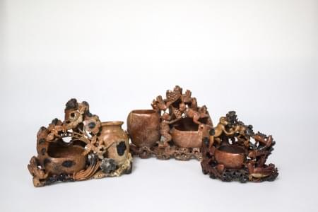 Stéatite sculptée à décor de motifs floraux, animaux et personna...