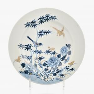 Porcelaine bleu blanc à décor de fleurs et bambous, D 33 cm