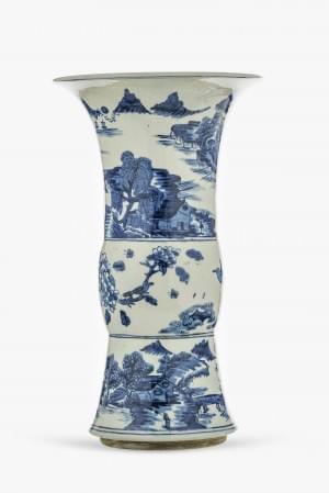 Porcelaine bleu blanc à décor de paysages sur trois registres, H...