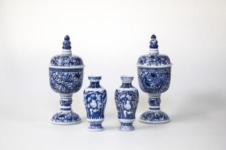 3435. Paire de coupes couvertes sur pied et deux vases balustres, Chin...