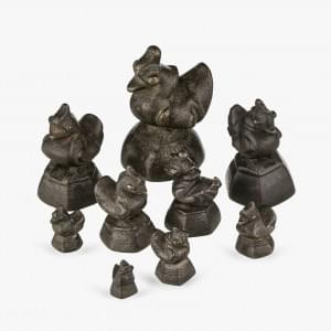 3444. Ensemble de neuf poids à opium figurant des canards, Birmanie
