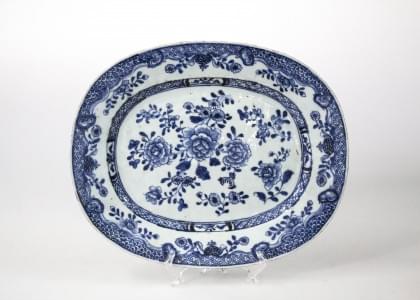 Porcelaine bleu blanc à décor de fleurs, D 21,5 cm