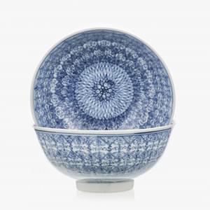 Porcelaine bleu blanc à décor de fleurs, D 13,5 et 12,5 cm