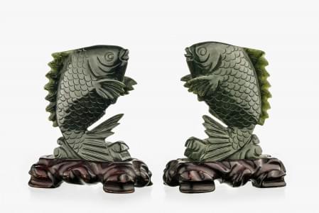 Stéatite tachetée noire, sculptée à décor de motifs floraux et s...