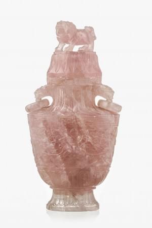 Quartz rose à décor de fleurs et feuilles d'acanthes, H 27 cm