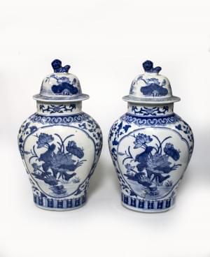 Porcelaine bleu blanc à décor de fleurs, H 45 cm