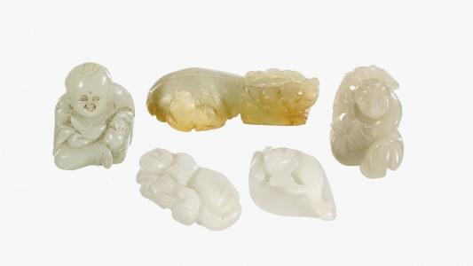 3479. Lot de six jadéites taille cabochon sur papier (total 5.4 ct)