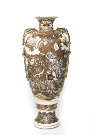 Céramique émaillée et polychromée dorée, à décor de personnages...
