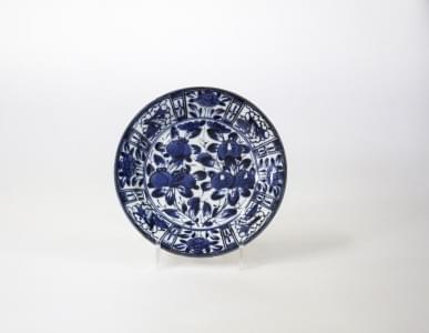 Porcelaine bleu blanc à décor de motifs floraux, D 15,5 cm