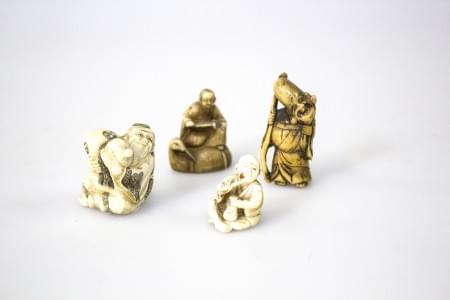 3506. Quatre netsukés figurant des personnages, Japon, époque Meiji (1...