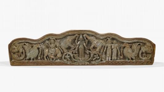Frise avec des divinités hindoues, bois sculpté et doré, L 130 c...