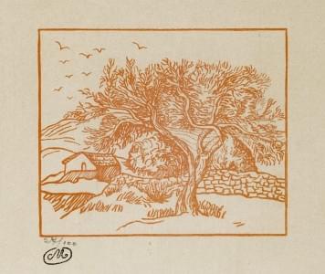 Vignerons et arbres, deux bois gravés, numérotés 27/100, 20x24 c...