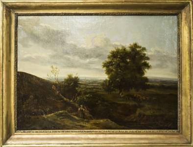 Scène galante dans un paysage, huile sur toile, 42x58 cm