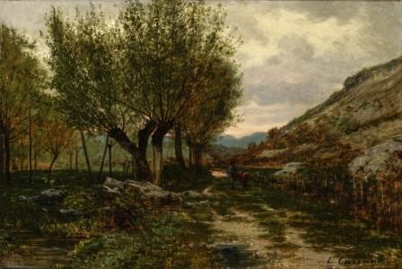 Paysage animé avec une rivière, huile sur toile signée, 39x60 cm