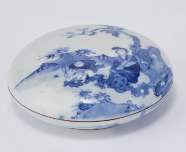 Porcelaine émaillée bleu blanc à décor de personnages, D 17,5 cm