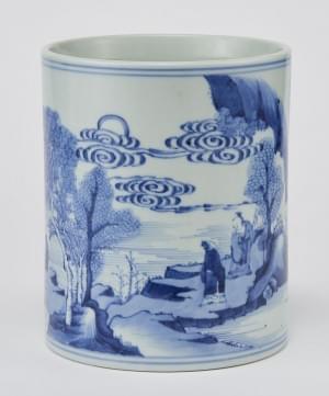 Porcelaine émaillée bleu blanc à décor d'un paysage, H 16,5 cm