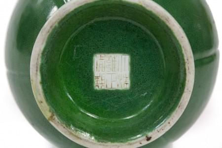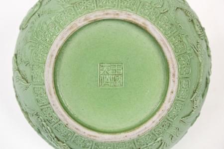 Porcelaine émaillée verte à décor d'un paysage, H 10 cm